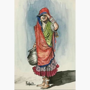 "Waiting" Indian village woman RAJASTHANI ART